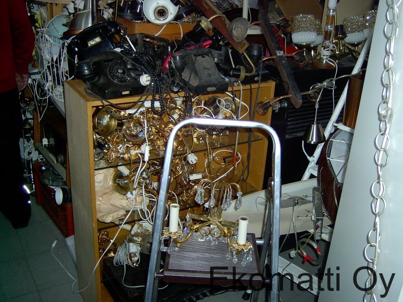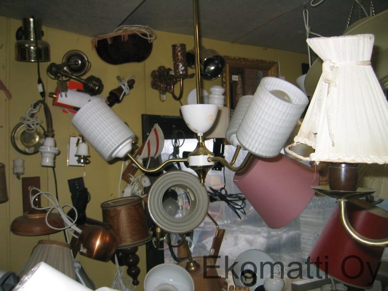 Valaisimet, valaisimien osat, sähkötarvikkeet ja antiikkipuhelimet yms. Sähkötyökalut, kodinkoneet, radiot yms.